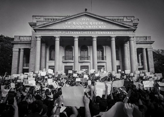 My cab was stuck in an excruciating traffic jam, quite typical of Bangalore, when I saw them - emerging as a collective, equipped with banners, microphones and raging energy. I grabbed my poster, hurled cash at the cab driver and jumped out before he could return my change. They stood and chanted and listened and waited. In a matter of 30 minutes, the entire 250 metres leading up to the Townhall was packed.