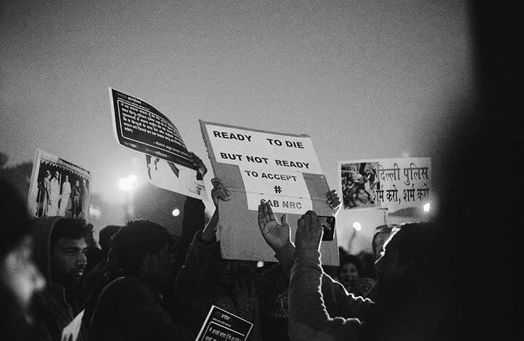 What does collective angst mean? For some, it means delving into political dissent without being branded anti-national. For others, it means a better economy and a functional social system. Today it meant opposing a blatant incursion on the secular fabric of India. A week before the protests started, the Citizenship Amendment Bill became an enforceable law. Read with the National Register of Citizens it meant that only Muslims would have to prove their citizenship and ancestry through ambiguous documents; it meant 200 million citizens being potentially stripped of their nationality un-democratically. I have to keep my stomach from turning at the seeming neutrality in the legal prose; resist the fear of all the blood that may come between enactment and implementation; resist the idea that this- blatant hatred of minorities, detention centres, rapid internet shut-offs & police brutality - this could all be normal one day.