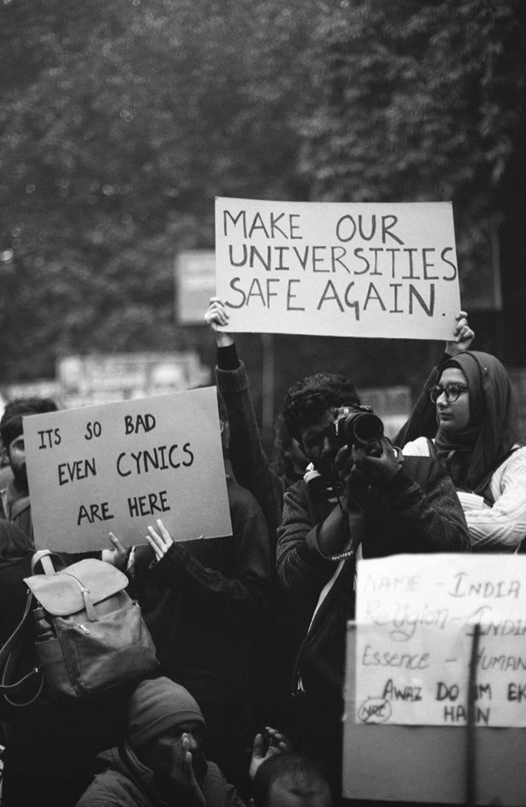 The aftermath of the act led to nationwide protests, activists being detained, professors being assaulted and students being shot at. Within a week, my Instagram blew up with venues and timings for city-wise protests. The days preceding and following the march were a waking nightmare of police brutality. Section 144 was declared just as peaceful protests were getting planned, and yet, hundreds gathered to defy an active governmental order to not do precisely that, not because we weren't scared of repercussions but because we were, we were so scared of dissent, that the presence of this collective fear had now turned into anger.
