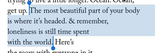 “It’s so effortless to let my loneliness defeat me, make me mold myself to whatever would (in some way - but not wholly) relieve it. I must never forget it… I want sensuality and sensitivity, both… Let me never deny that… I want to err on the side of violence and excess, rather than to underfill my moments.”
