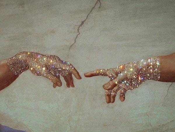 — @sarashakeel, Collage art based on Michelangelo's Creation of Adam