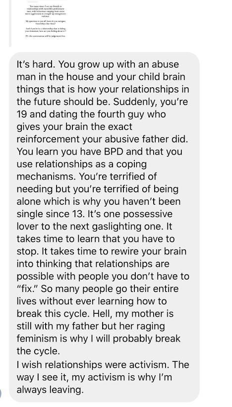 So yes, relationships are activism. Another thing they are is chaos. And both things can be true.