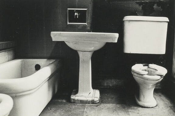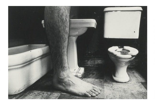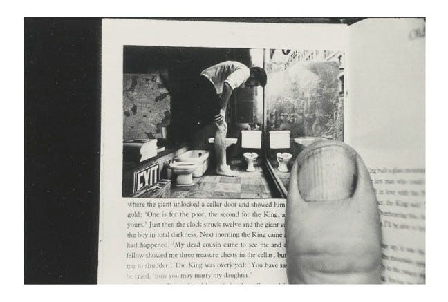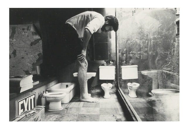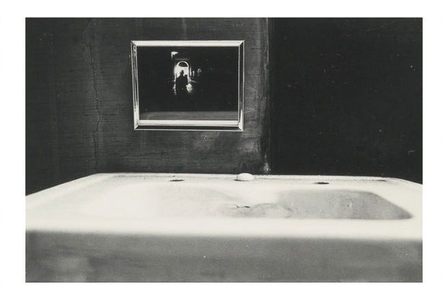 The first and the last image in this series seem to be the same, we’re not sure if they are. You can see the silhouette of the man in the tunnel on the mirror above the sink in the first image also. Michals is taunting us by giving away the whole series in the very first image. He wants us to look closely and from a distance at the same time. He wants us to observe and question things, form our own version of reality.
